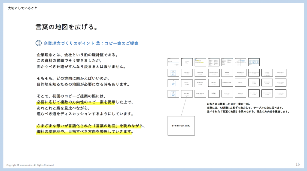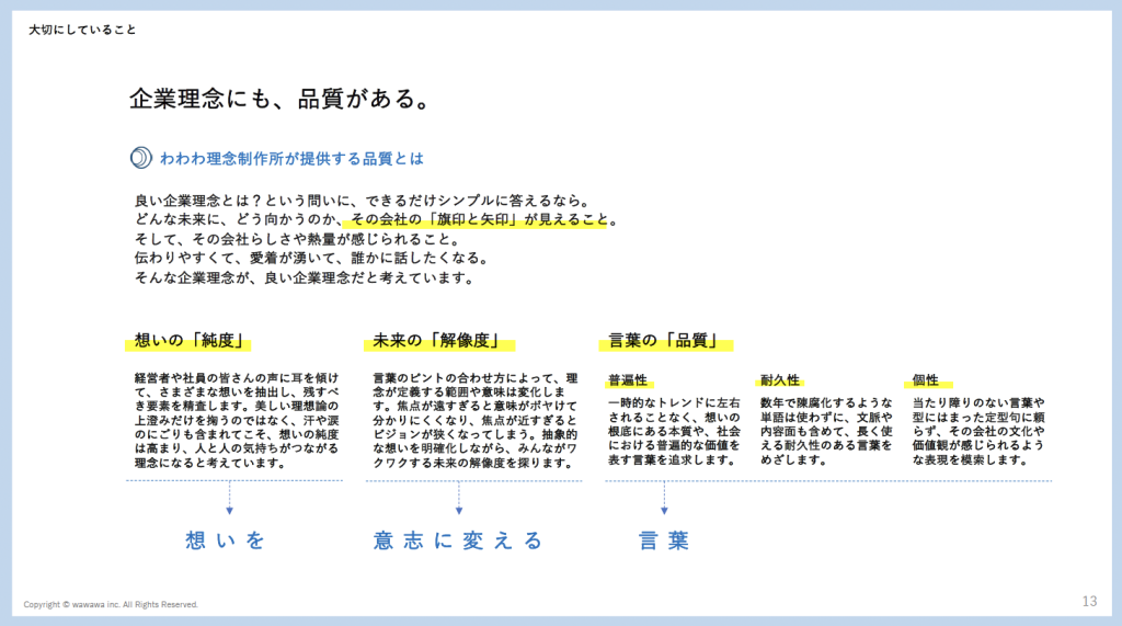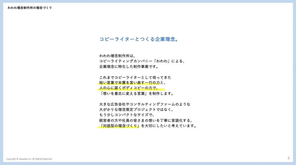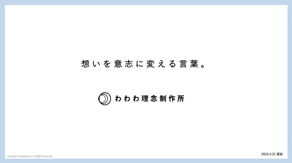 「わわわ理念制作所」を開始しました。