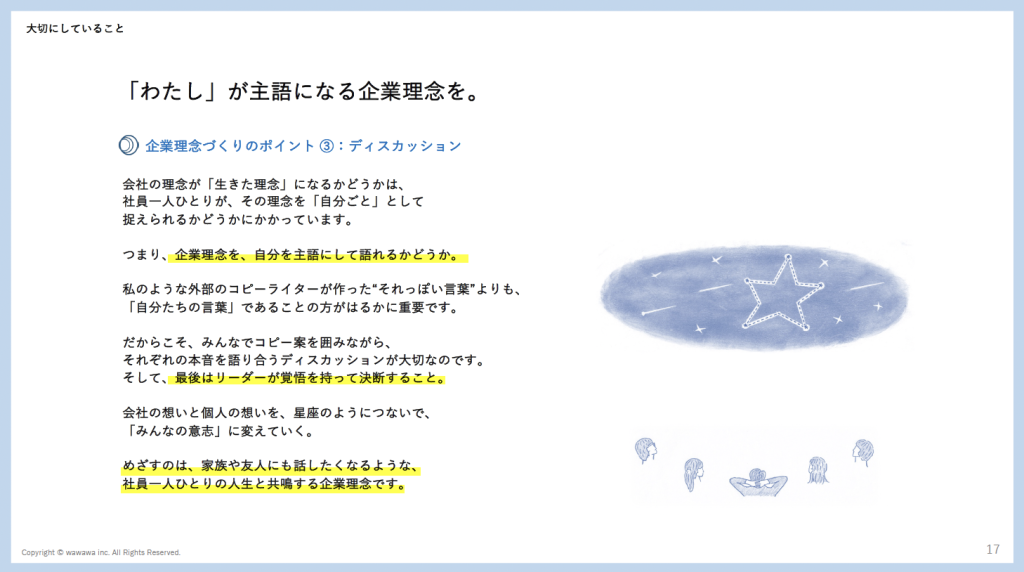 みんなの「意志」となる会社の理念を制作いたします。